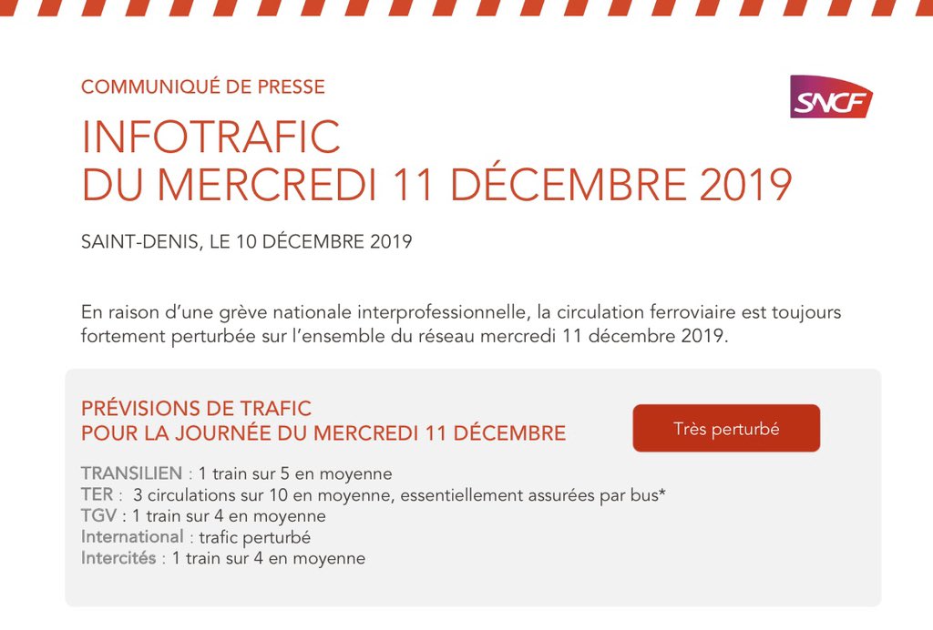 Greve Sncf 12 Decembre 2019. Les trains tgv ou ter risquent d'être fortement impactés partout en france ; Retrouvez l'information trafic sur l'assistant sncf. Journal info 12h00 du mercredi 07 octobre 2020. Grève du 5 décembre : A 48 heures du mouvement de grève dans les transports, la sncf a détaillé les prévisions de trafic sur son réseau.