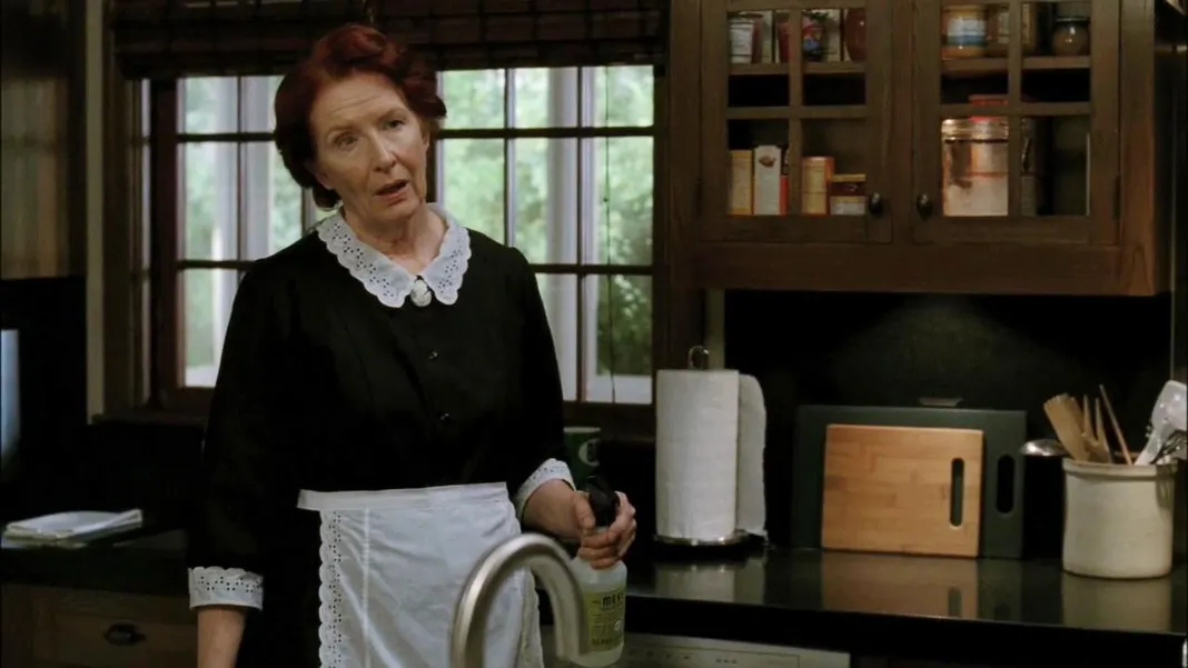 Conroy played the older version of moira, the housekeeper for the harmon.