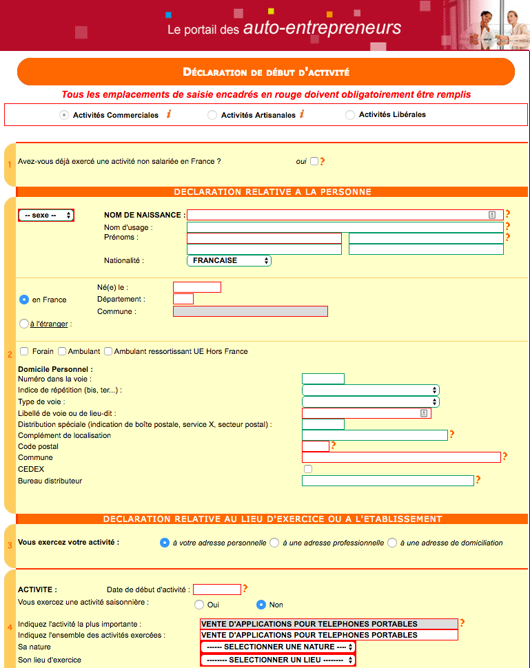 Pour déclarer son début d'activité, le vendeur à domicile doit effectuer des. Votre dossier de début d'activité se compose d'un formulaire unique po pl destiné au cfe, qui comprend notamment la déclaration sociale qui sera adressée . Un professionnel qui souhaite exercer en libéral doit effectuer une déclaration d'activité auprès de l'urssaf qui constitue . Guide pratique et pièges à éviter. Cotisations début d'activité artisans et commerçants.